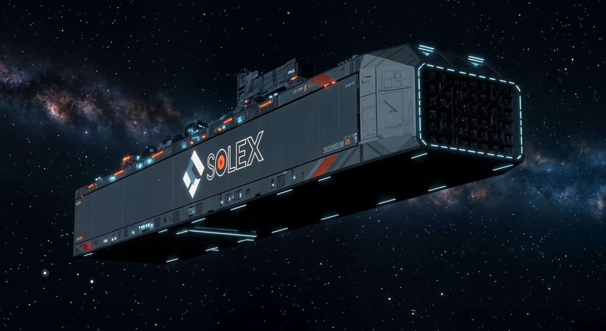 Painted in matte black that swallowed starlight, the Obsidian Veil sailed through the void with quiet authority, its silhouette broken only by thin LED tracer lines pulsing in crimson and icy white—SolEx’s livery, sleek against the darkness. Along the flanks, rows of reinforced windows glinted faintly, revealing glimpses of the life inside: travelers dozing in reclined pods, children floating weightless in recreation chambers, crew moving through softly lit corridors. Modular passenger units, shaped like oversized aircraft fuselages, were seamlessly integrated along the ship’s dorsal spine, each connected by pressurized walkways. Far below, a massive blue planet turned slowly, casting a faint glow across the vessel’s hull. The Obsidian Veil made no sound, needed no welcome—just a silent passage from one world to the next, carrying thousands wrapped in technology, dreams, and the deep hush of space.
