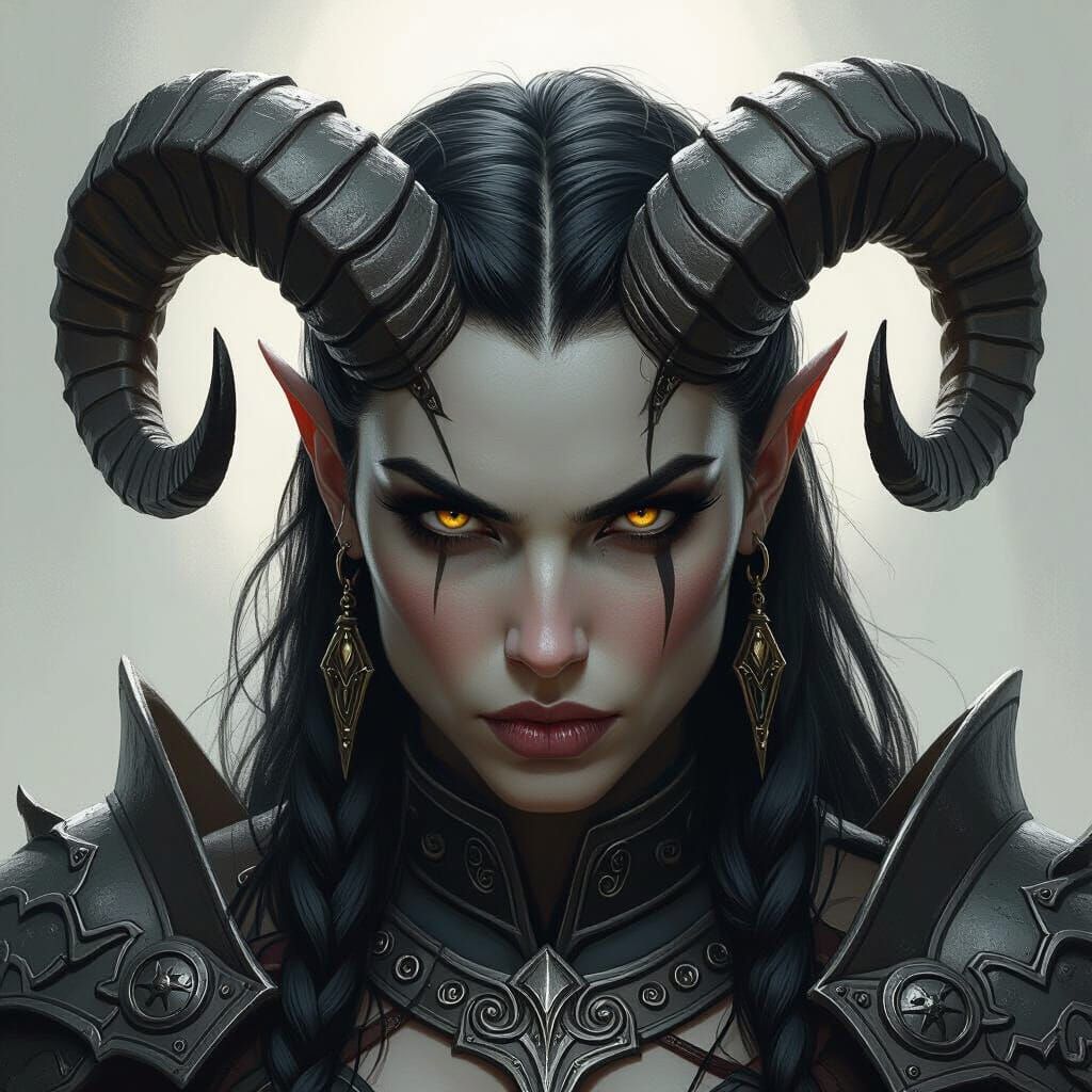 Generate unique fantasy characters like this qunari warrior. Free and easy to use AI image generator.