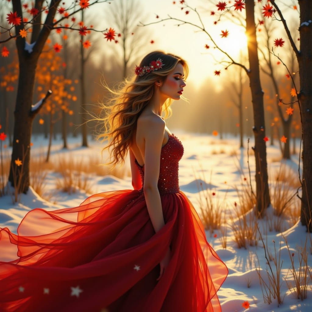 Generate unique images of beautiful Slavic princesses with flowing red braids, dressed in traditional pagan fashion. Free and easy to use!