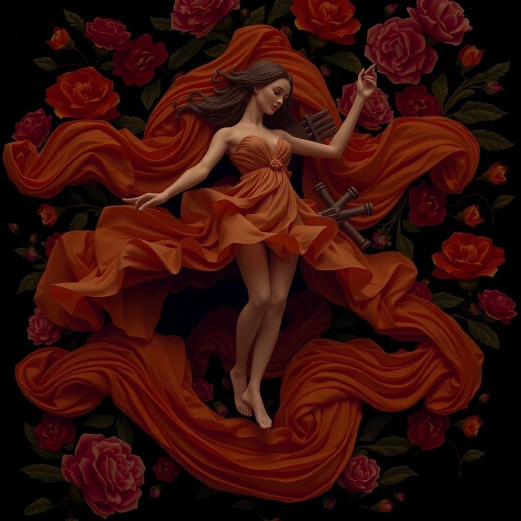 This image shows a yellow cotton dress billowing around a figure, reminiscent of the Garden of Earthly Delights. The artwork evokes a sense of foreshadowed glory and anticipation of a brighter future.