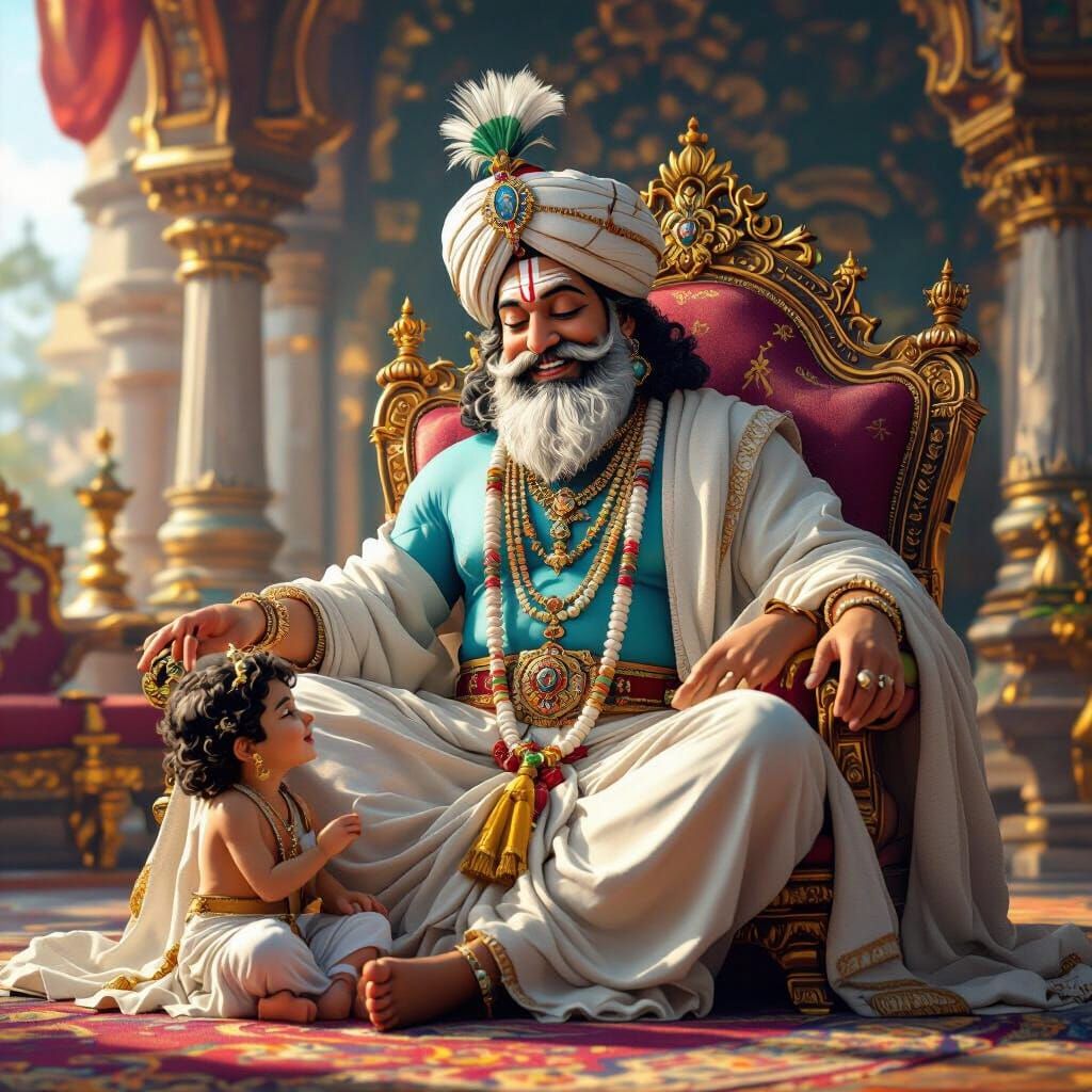 Easily generate your own images of Nanda Maharaj, Krishna's father, with our free AI tool. Flexible and fun!