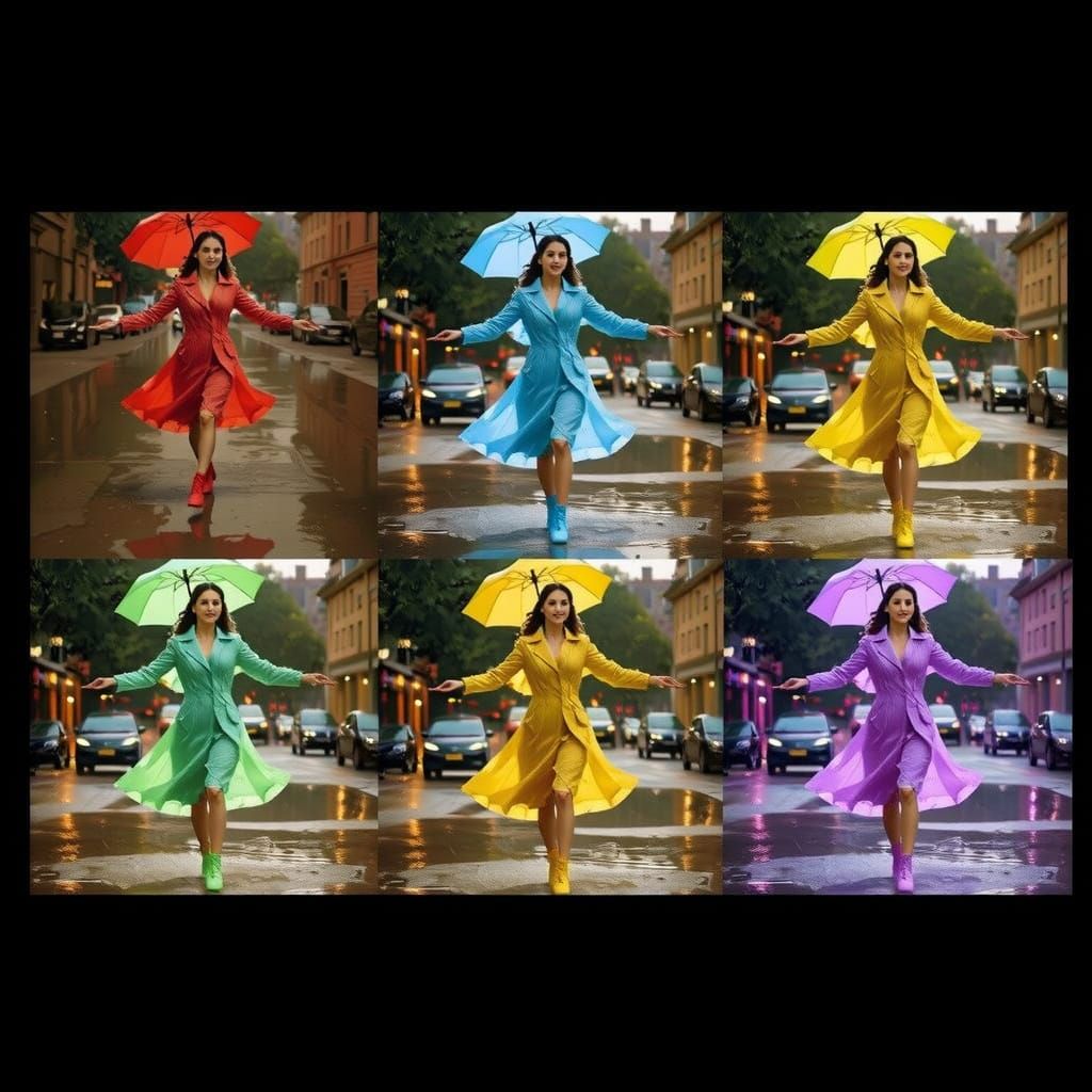 Easily generate unique images of women in raincoats holding umbrellas with our free AI tool.
