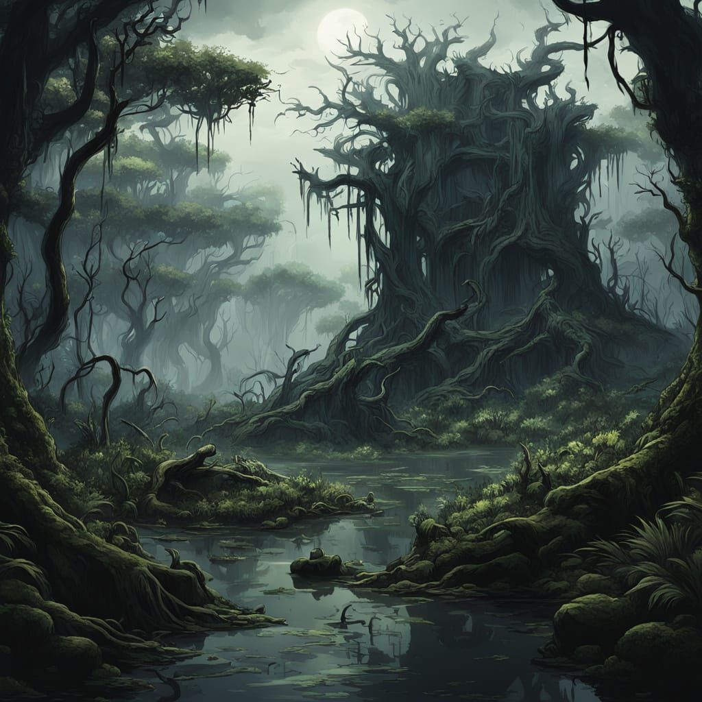 Generate unique dark swamp images with our free AI tool. Explore wild vegetation and marshes effortlessly.