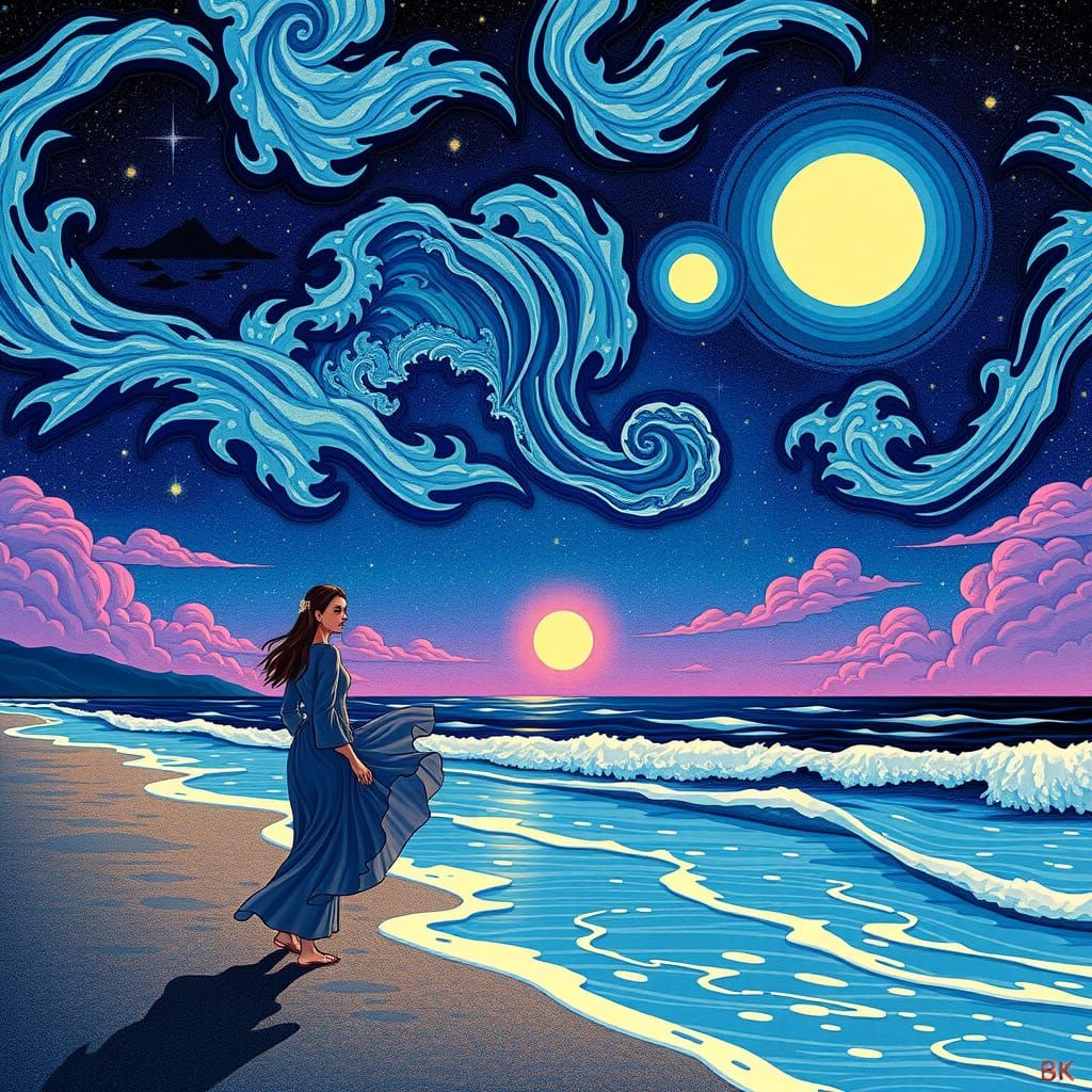 Create your own stunning starry night beach scenes with our free AI image generator!
