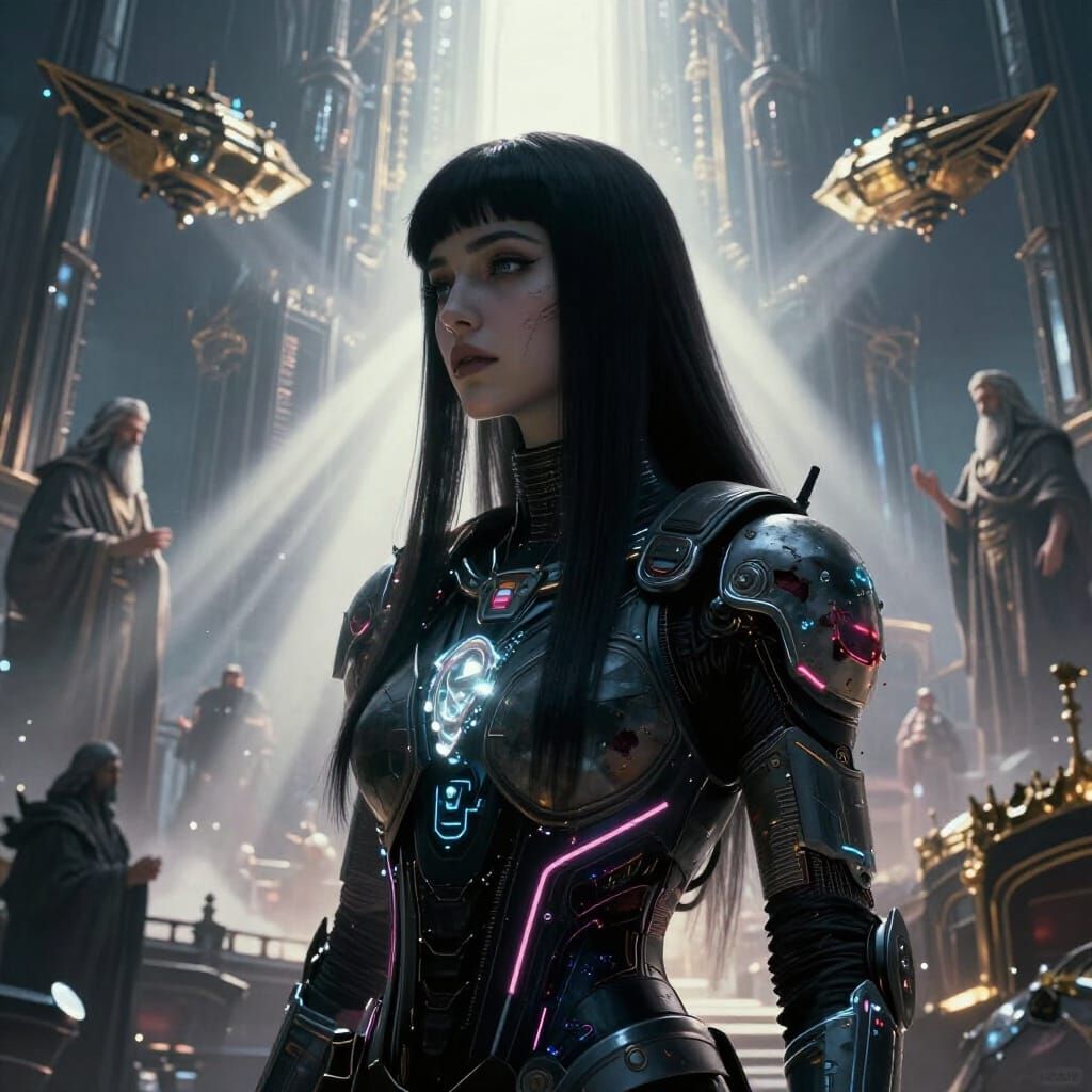 michelangelo paintings guys style in vertex, for glowing up crystal vertex beautiful armenian woman with ultra straight hair, very connected spiritual, only bicromic, silouette, shy and astouning face city of shamballah in background with masters, flying gold ships, hard decay, ray of lights between ...