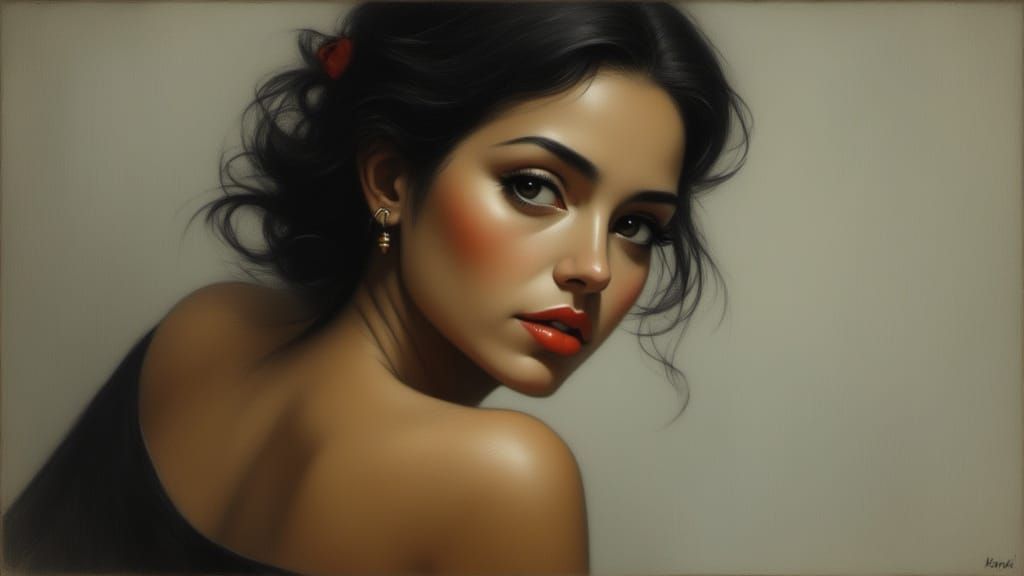 This image features a portrait of a woman, evoking Parisian elegance and style. The AI-generated artwork captures a refined and sophisticated mood.