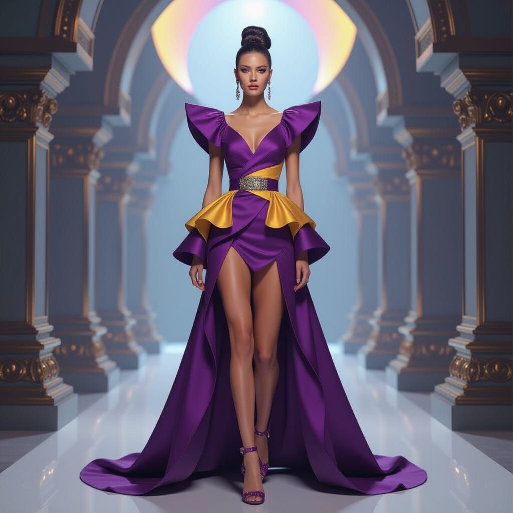 Crea el sueño irracional de una persona vestida de dior alta costura de fiestas colores vibrantes estilo futurista. Hiperrealista, gran número de detalles. Foto de estudio , conceptual art, wildlife photography, vibrant, illustration, portrait photography, cinematic, photo, fashion