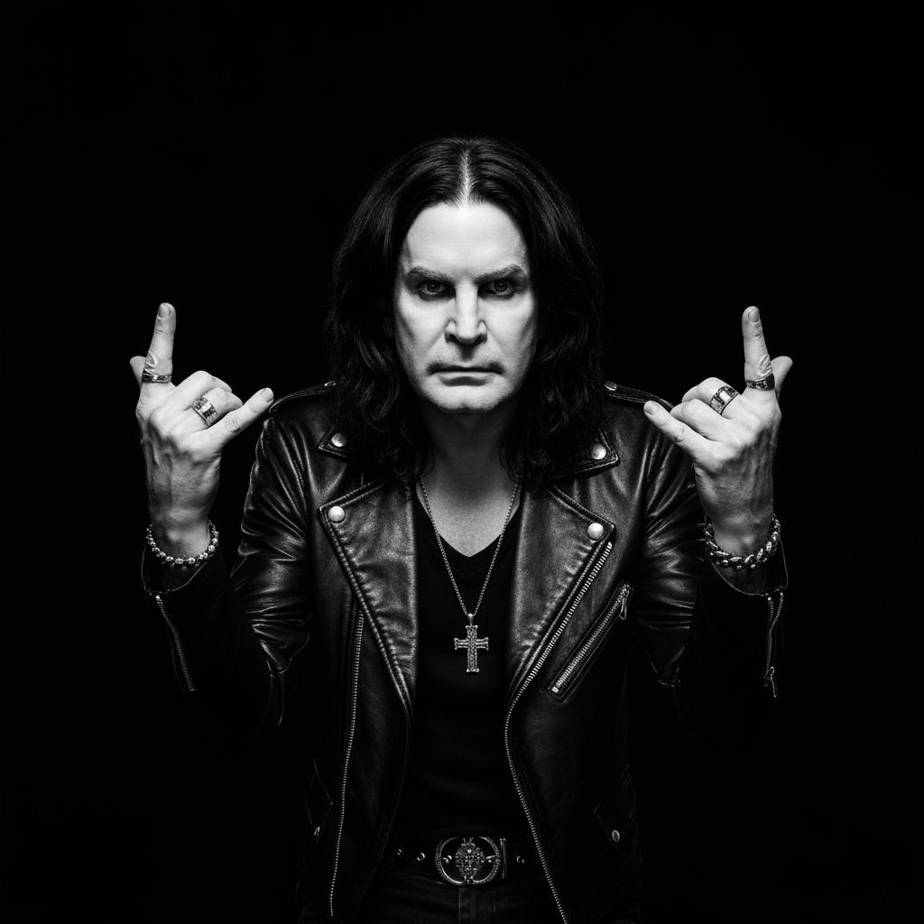 A striking black and white portrait of a rock musician with intense eyes and dark eyebrows. The high contrast image captures a dynamic pose with dramatic lighting, reminiscent of vintage rock and roll photography.