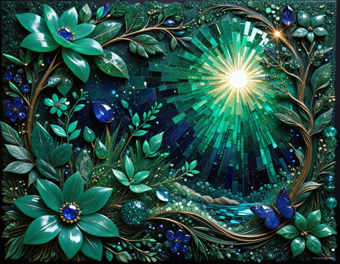 AKA Jade River Dreams with Sapphire Stardust, Emerald Echoes and Solar Blossoms