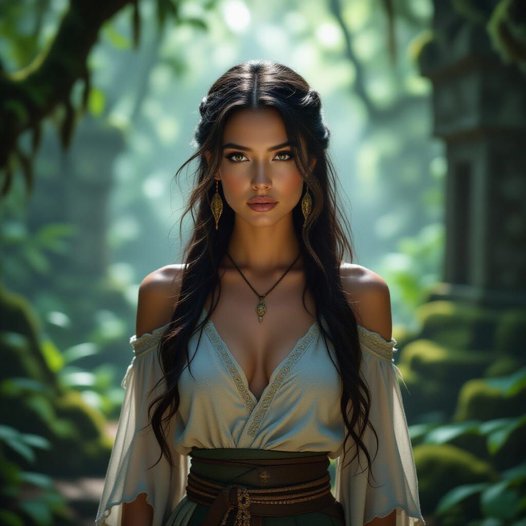 A hyperrealistic digital painting captures a lone figure in a mystical forest clearing, bathed in atmospheric, diffused light. The image emphasizes emotion and a cinematic quality, inspired by evocative fantasy art.