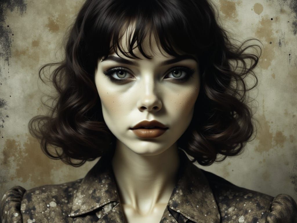 This detailed lomography image features Gene Tierney as a 2000s movie final girl, with sharp focus and intricate golden-brown camaieu details.
