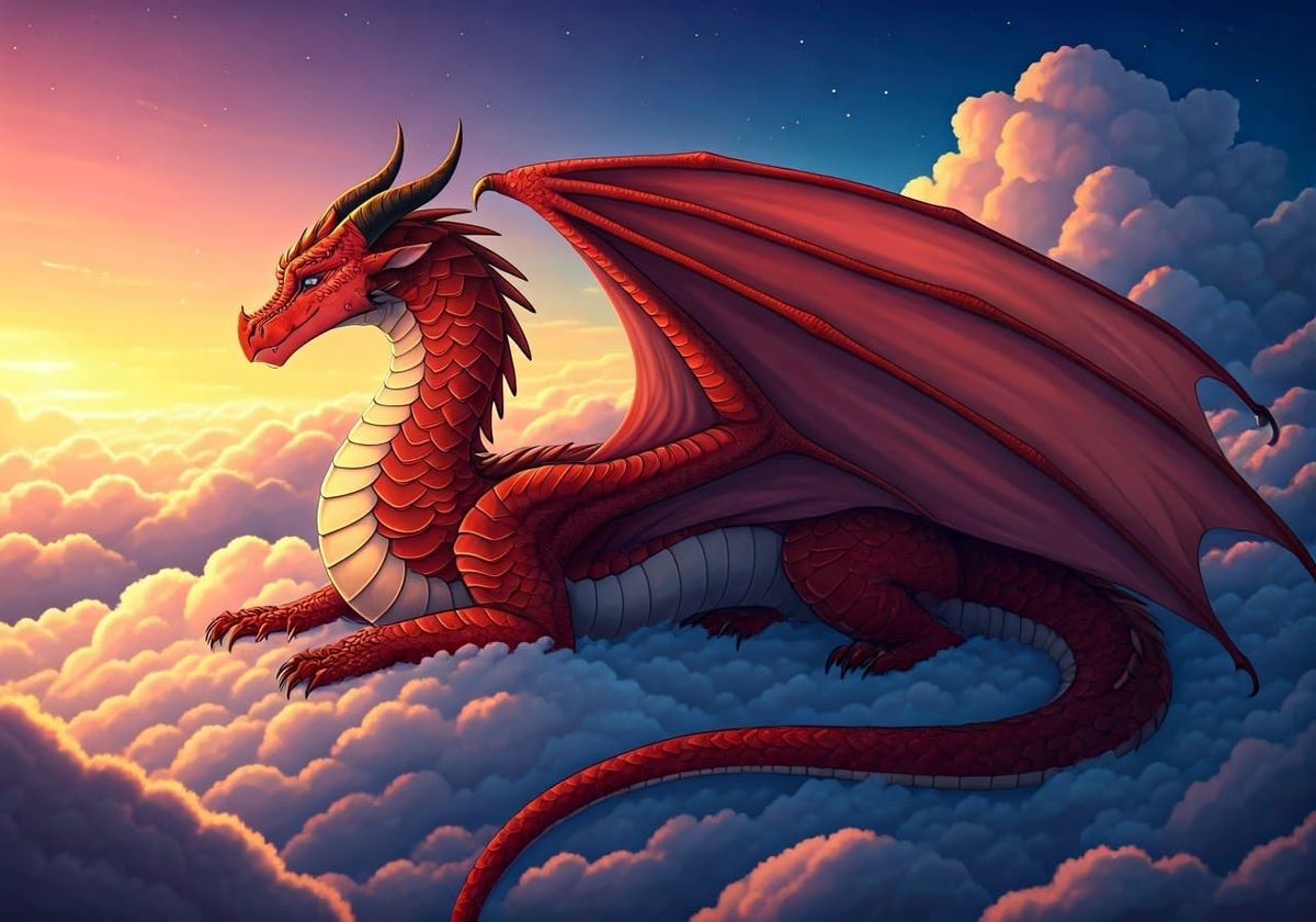 A Wings of Fire SkyWing dragon sitting in a cloud. I’ve always wondered why Skywings are called “Skywings” if they don’t have anything to do with the sky…
