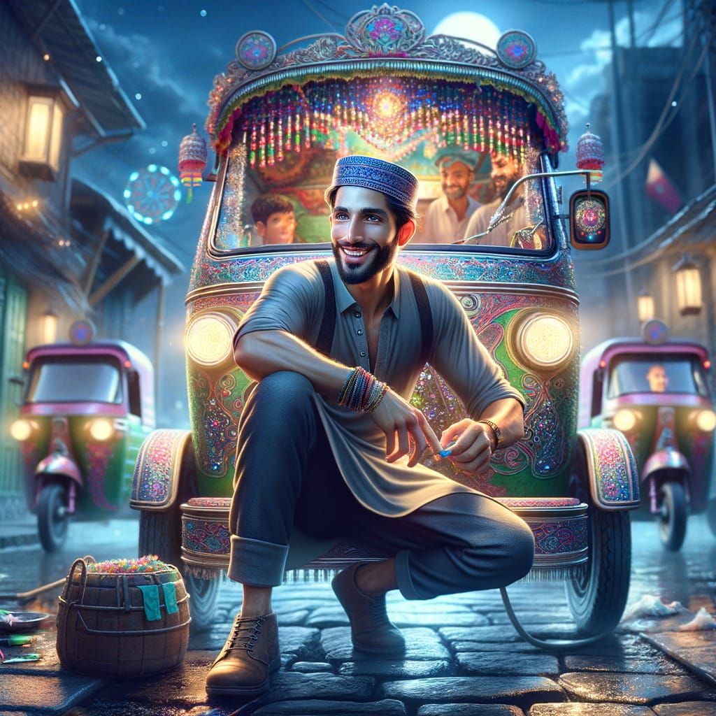 Easily create your own images of energetic Pakistani rickshaw drivers with our free and flexible AI generator.
