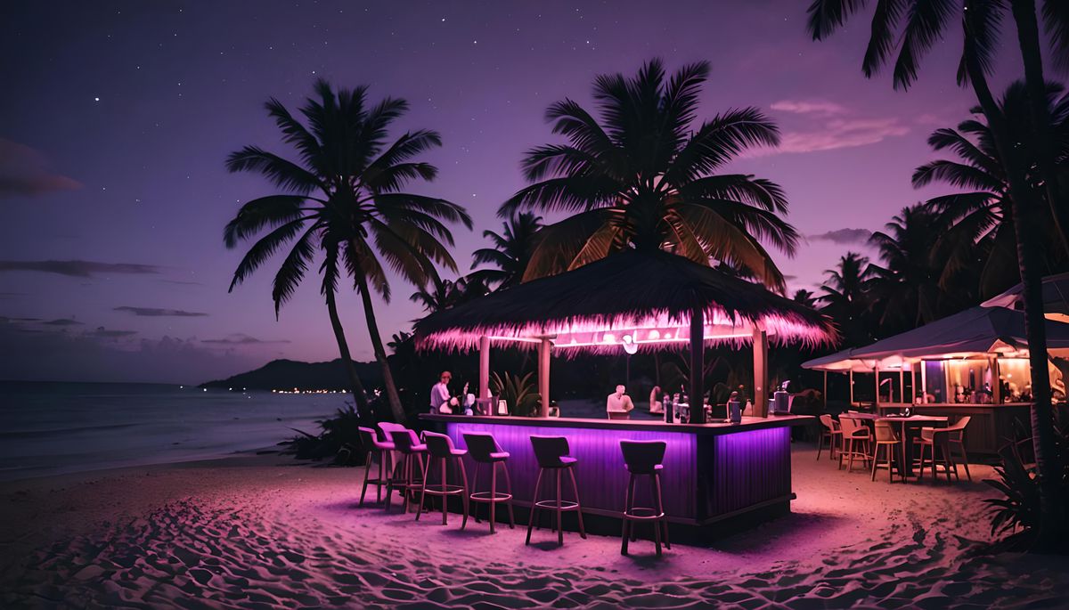 Easily design your own tropical resort images at night with our free AI image generator - flexible and fun!