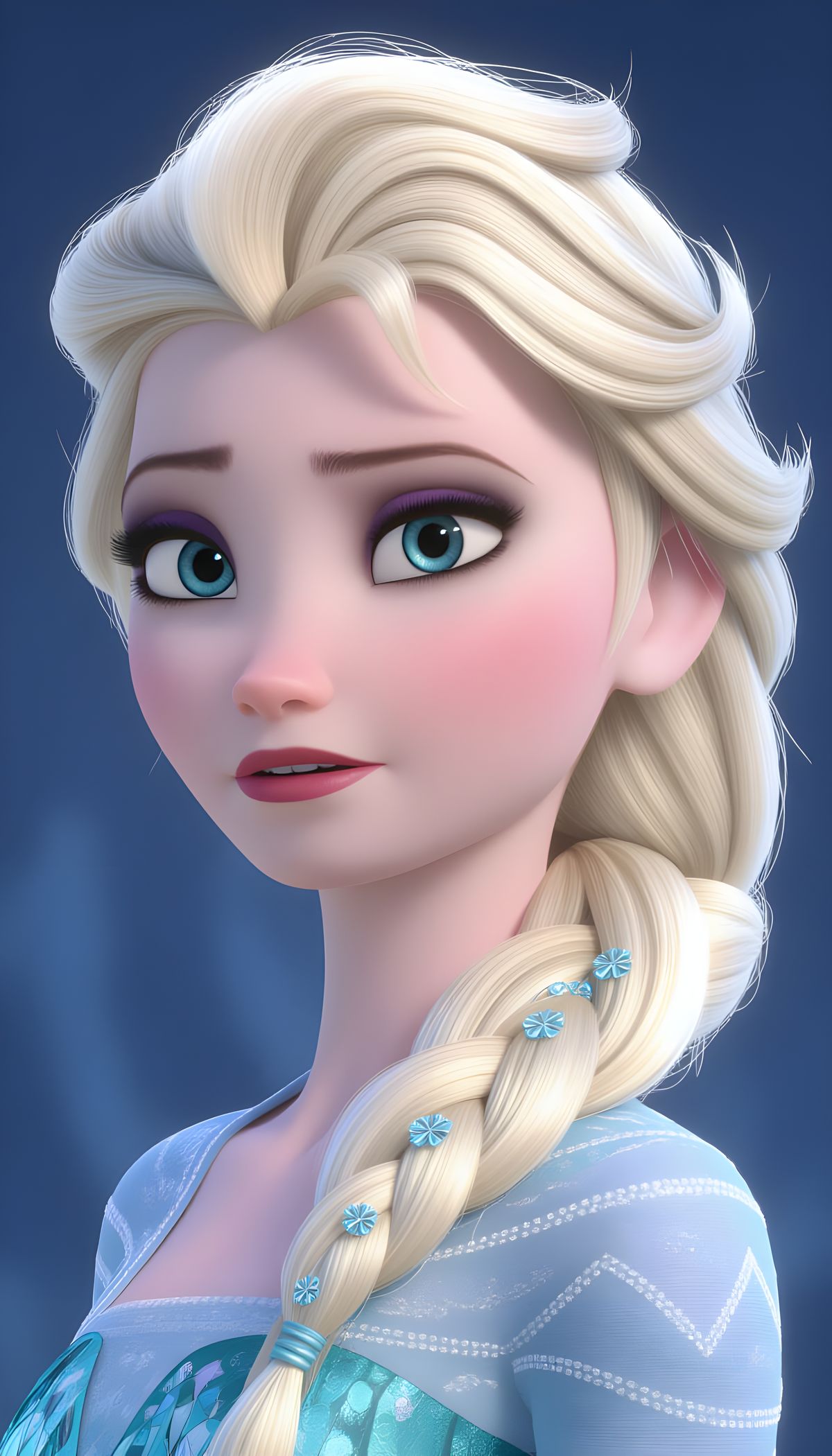 A hyper-detailed, realistic close-up portrait of Anna from Frozen, rendered in a cinematic Pixar style with dramatic lighting and film grain effects.