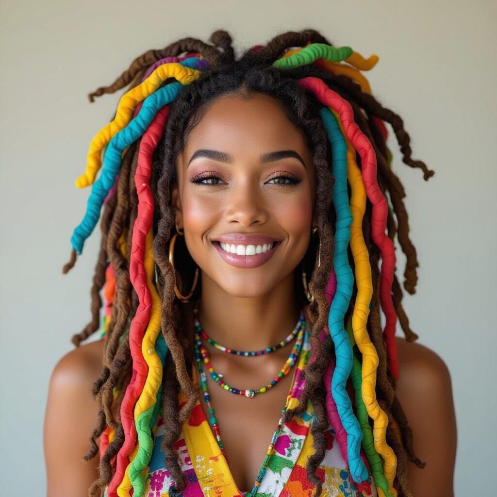 A vibrant image of a reggae musician with unique dreadlocks. The dreadlocks are creatively crafted from multicolored playdough, adding a whimsical and artistic touch.