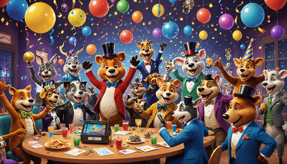 A gathering of anthropomorphic animals at a New Year's Eve party, having a very merry time.