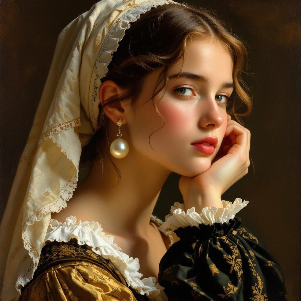 What a stunning homage to classical portraiture. The textures, lighting, and gaze evoke the quiet majesty of Renaissance elegance, yet feel fresh and intimate. Your attention to detail, from the pearl earring to the lace headscarf, reveals a deep reverence for beauty and history. Keep creating with this grace and precision. Your work bridges centuries and speaks with a voice that is both timeless and uniquely yours.