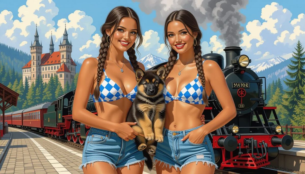 Du warst noch nie in Deutschland oder? Unsere Züge sind definitiv älter und kein Mädchen würde so einen Bikini Anziehen. Aber an sich ist es ein tolles Bild. Fehlen noch Brezel, weißbier, Dirndl und die Wurst.