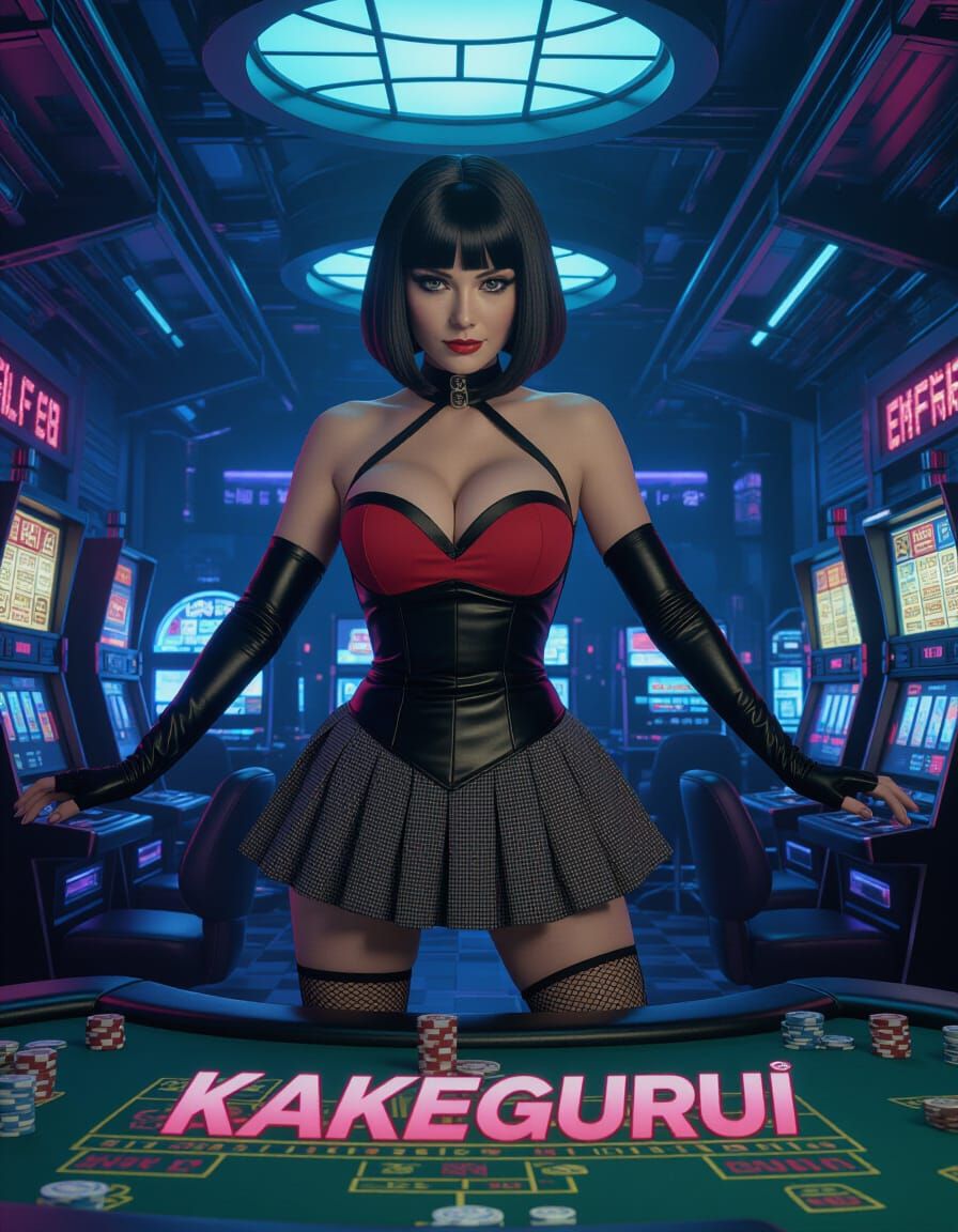 A striking picture of a woman cosplaying in a futuristic casino. This image, rendered as a Pixar-style photorealistic scene, captures the subject in a dynamic pose within a claustrophobic, biomechanical environment. The aesthetic is cyberpunk with filmic qualities.
