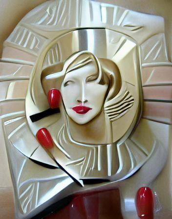 A stylized Art Deco portrait of a woman with geometric patterns. The artwork evokes the glamour and elegance of the 1920s and 1930s.