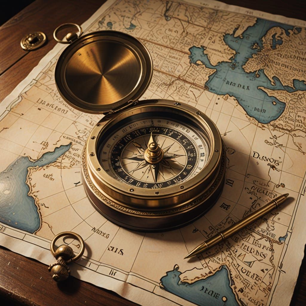 Generate your own vintage compass and antique map images with our free AI tool. Easy and fast!