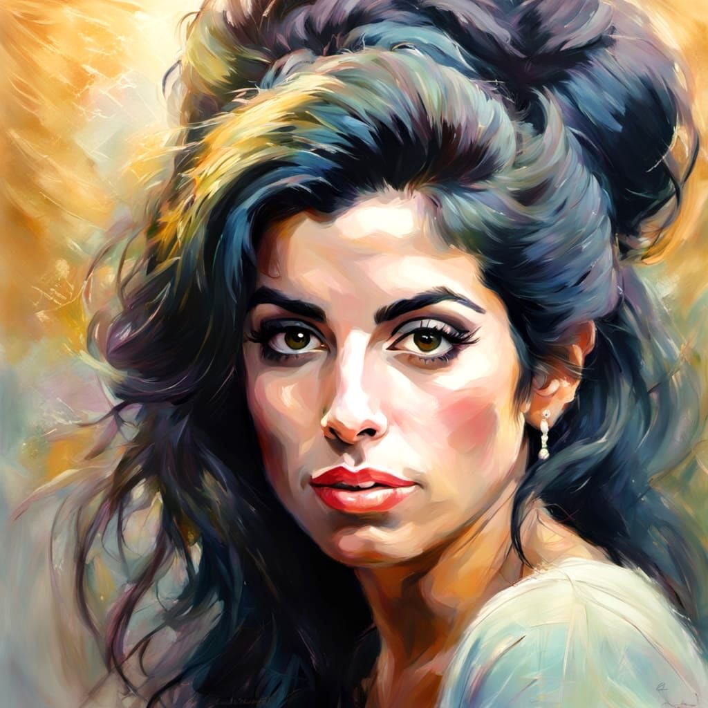 This image shows a vibrant pastel portrait of Amy Winehouse. The artwork captures her likeness and distinctive style using soft, blended pastel colors.