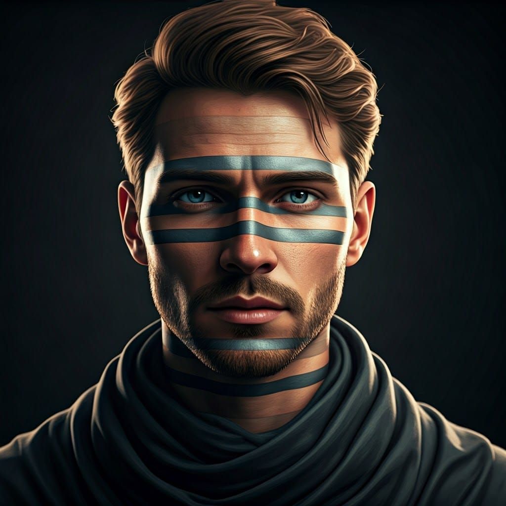 A captivating image of a man's portrait cleverly concealed within thick, horizontal stripes to form an optical illusion. The artwork has vibrant colors and high detail, as 8k digital art.