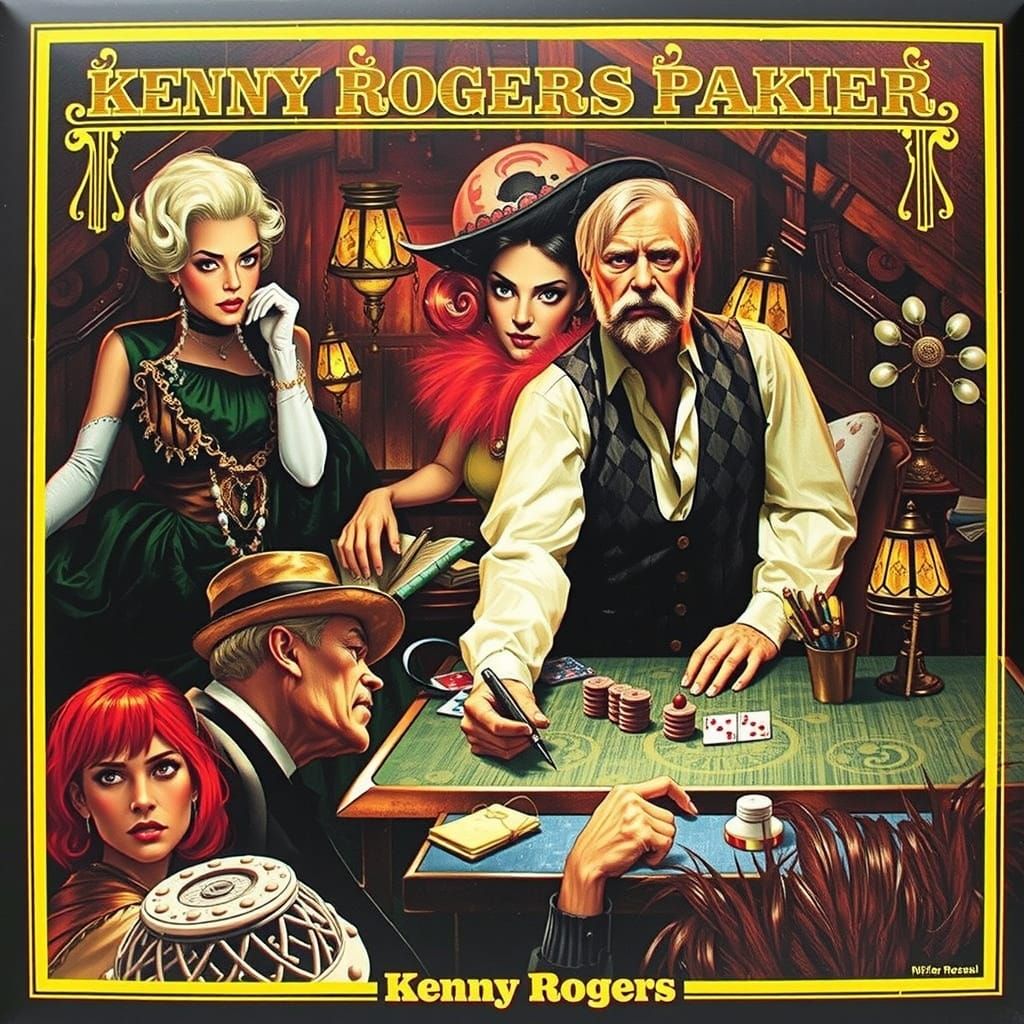 A digital rendering of a man with silver hair at a poker table in a dimly lit vintage room. The image, reminiscent of cinematic concept art, features ultra-realistic textures, clothing, and dramatic lighting.