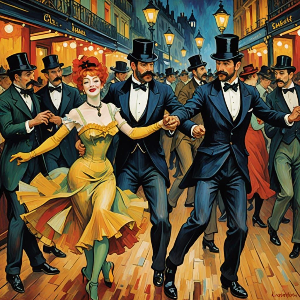 Easily generate your own lively Parisian cabaret images inspired by Toulouse-Lautrec, Post-Impressionism, and bold colors.