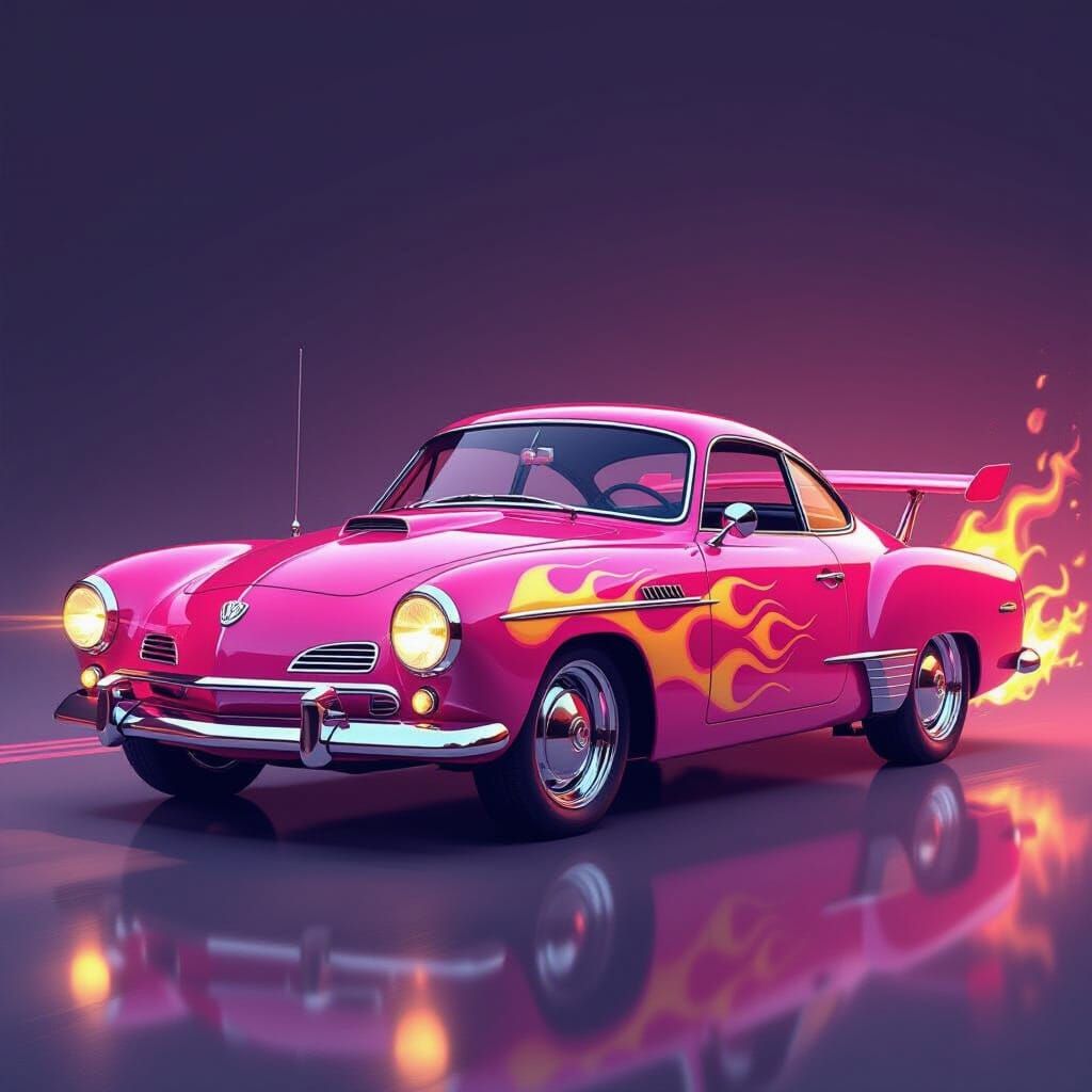 Design unique pink sports cars with wings and flames. Easy, free, and fun with our AI image generator.
