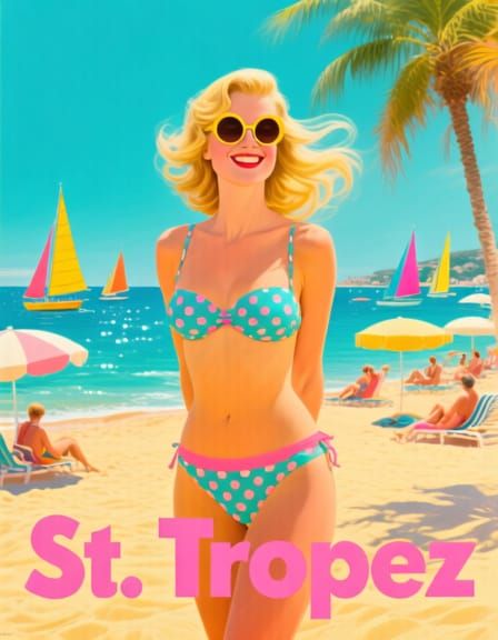 Design your own unique 1960s St. Tropez beach posters with our easy-to-use AI generator. Try it free!