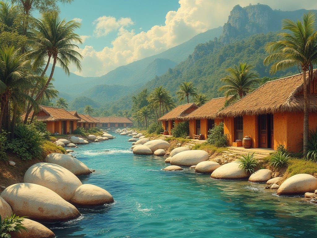 Easily create your own village images with our free AI image generator, where you can design a quaint town surrounded by nature
