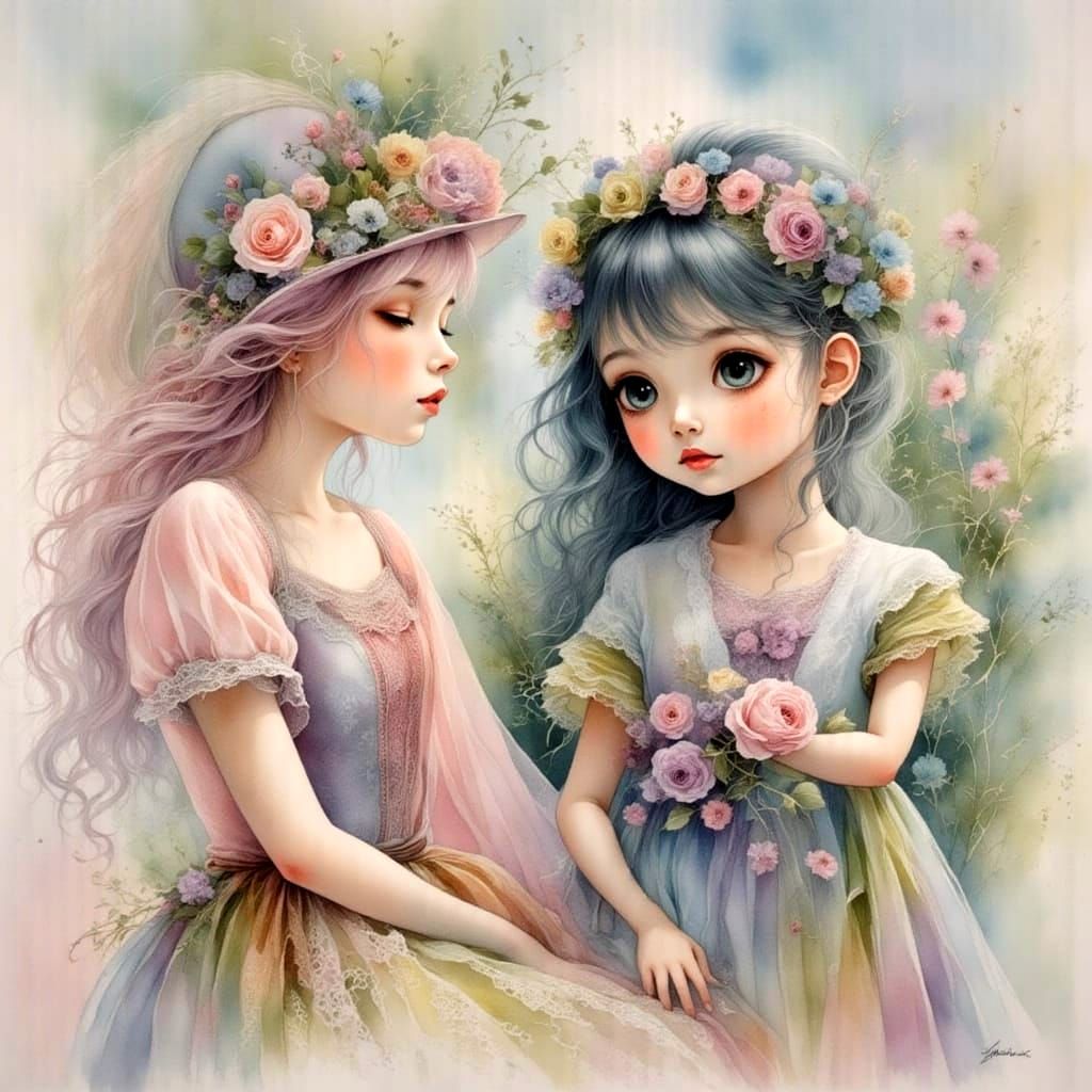 This image shows a portrait created with AI using a LORA model, producing a soft, delicate aesthetic. The artwork features subtle details and an evocative mood.