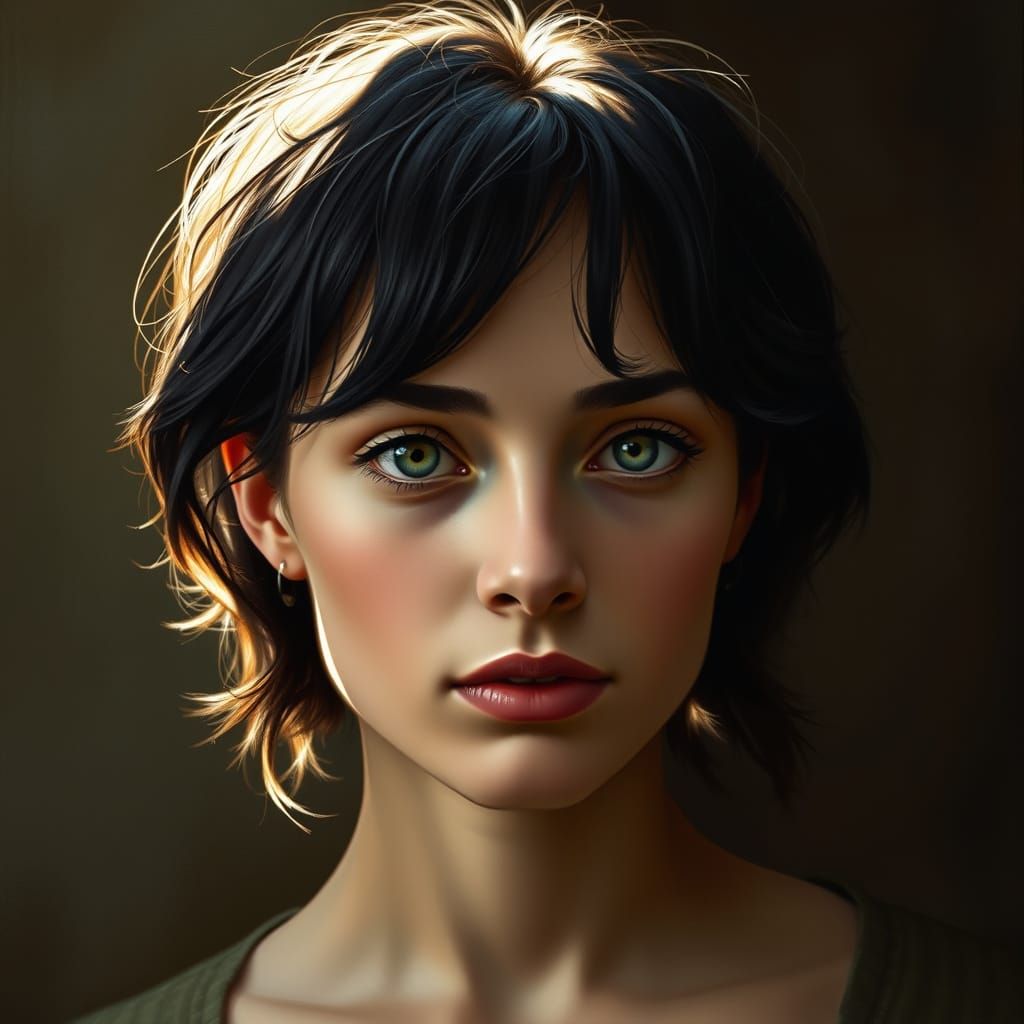 A serene portrait of a young woman, illuminated by soft golden light, with intricate brushstrokes and textures that evoke depth and emotional complexity, in the style of the Dutch Masters.