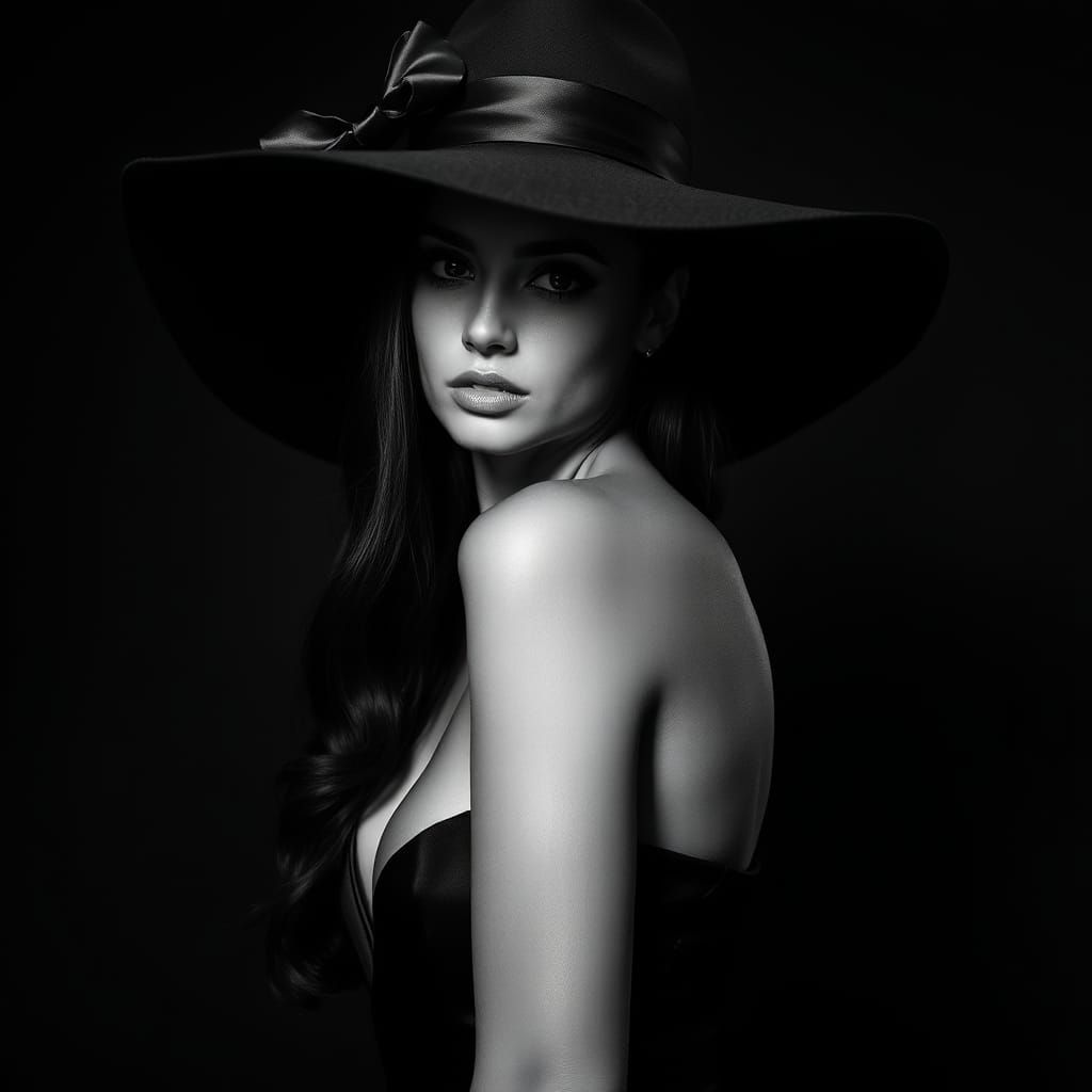 A stunning black and white portrait of a young Guatemalan Latina woman exuding quiet confidence and captivating the viewer with her intense gaze and delicate features.