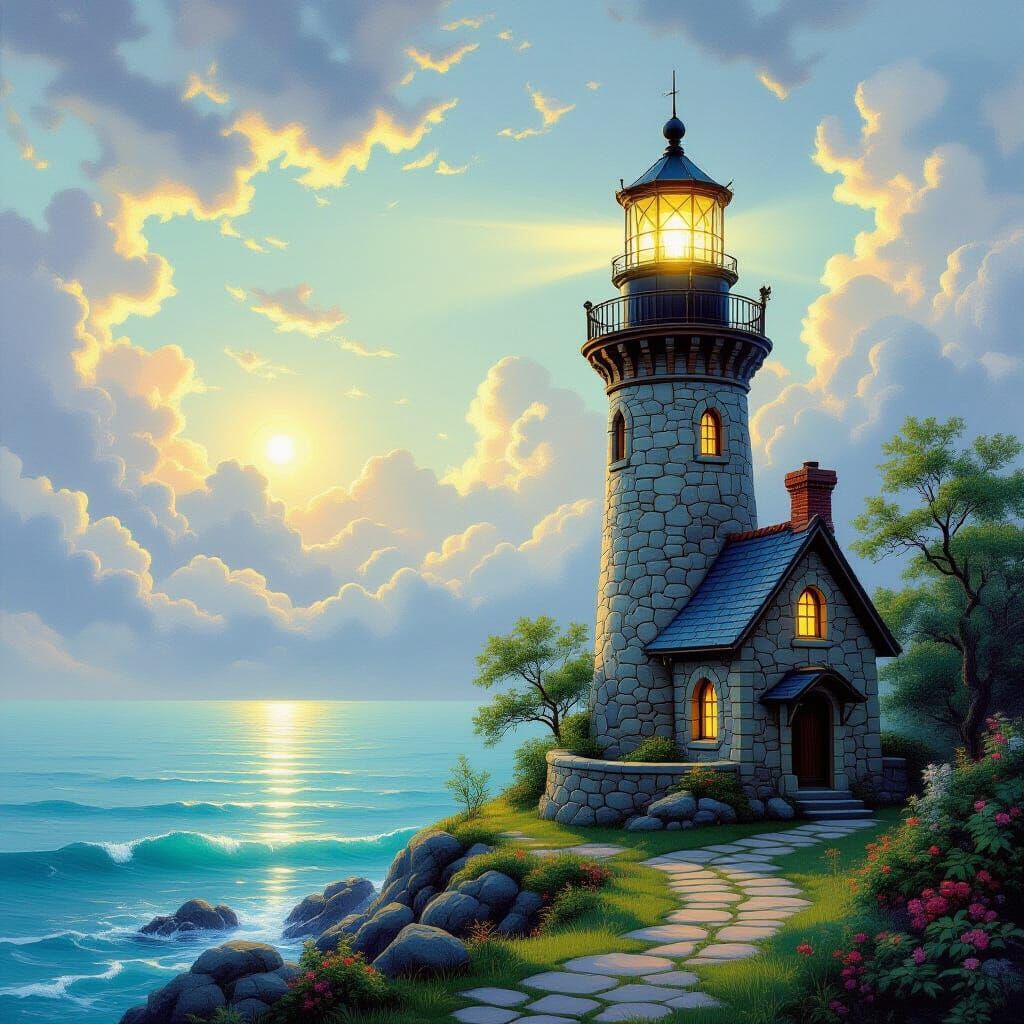 Create your own cosmic lighthouses by the ocean! It's free, easy, and endlessly inspiring with our AI image generator.