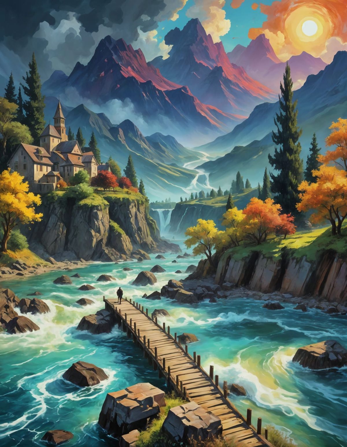 This image showcases a breathtaking digital painting with intricate details, thick textured layers, and a blend of neo-impressionist and expressionist styles, evoking a sense of drama and atmosphere.