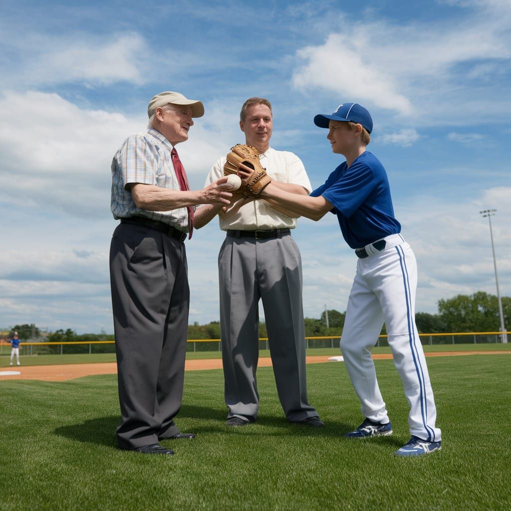 This image shows three generations of men enjoying a baseball game together. The picture captures the spirit of family and the timeless appeal of the sport.