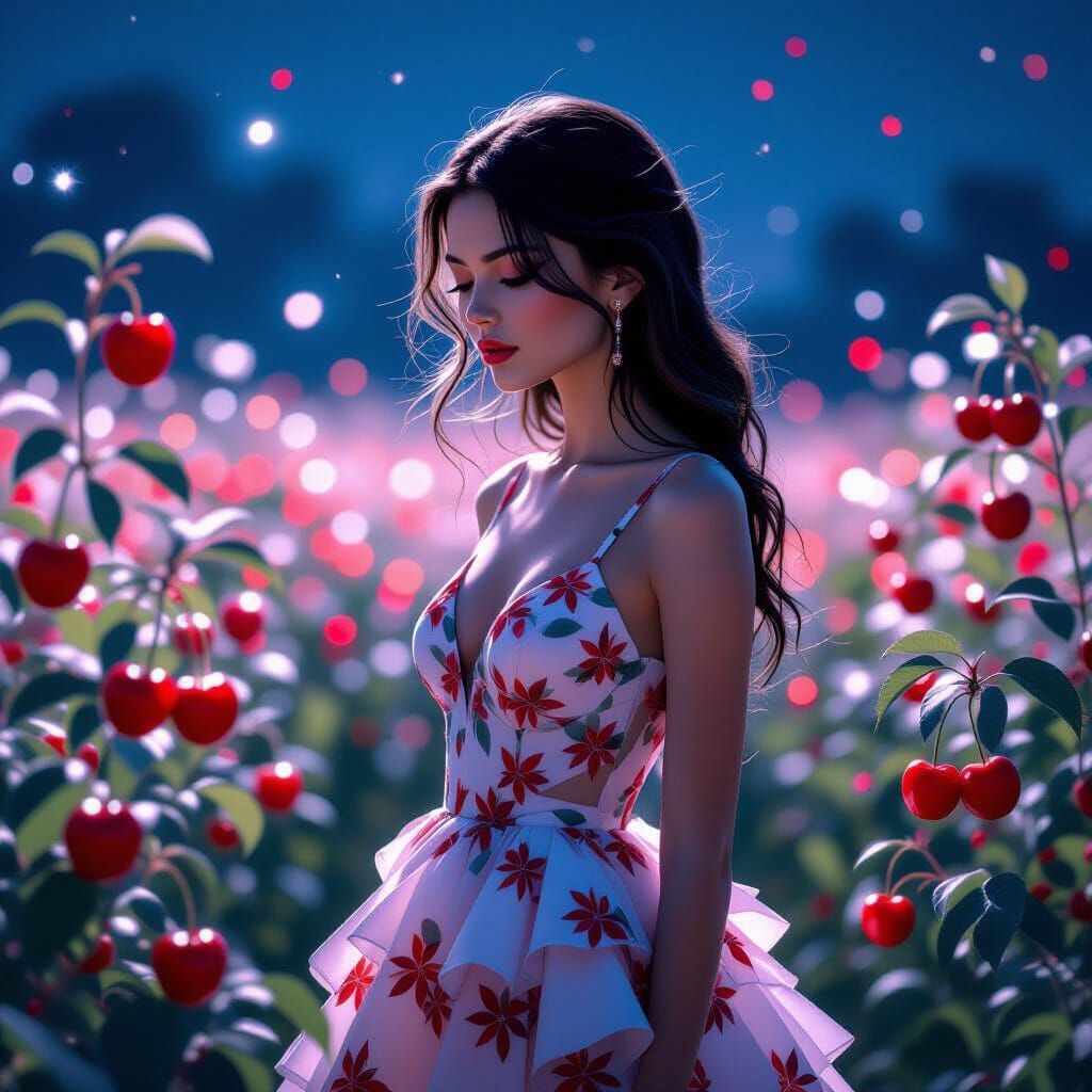 Easily generate unique fashion dress images with flowers and cherries using our free AI tool.