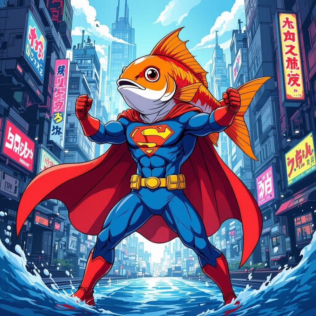 Easily generate unique images of fish in superhero costumes with our free and simple AI tool. Start creating now!