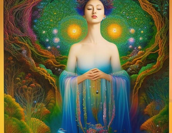 Infinite Consciousness: An In-depth Exploration of the Shift in Consciousness Constitutive of Enlightenment in relation to True Nature, the Soul, the Body-Mind, the Heart and the Me, mysterious, deep colors, Miho Hirano, Olga Kvasha, rich colors, intricate delicate carvings, sharp focus, 8 k, octane ...