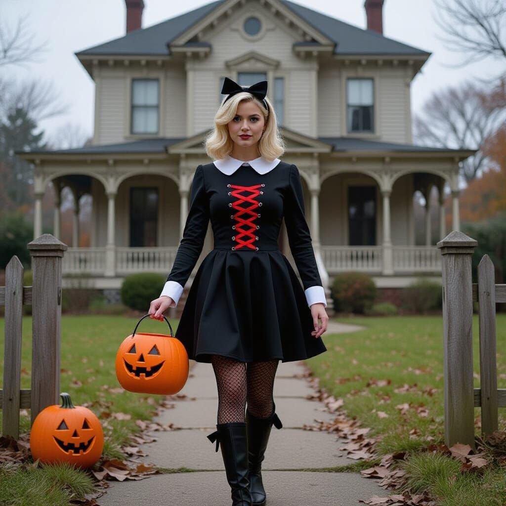 Generate unique images of Sabrina Spellman in Halloween costumes or haunted houses with our free AI tool. Easy and fun!