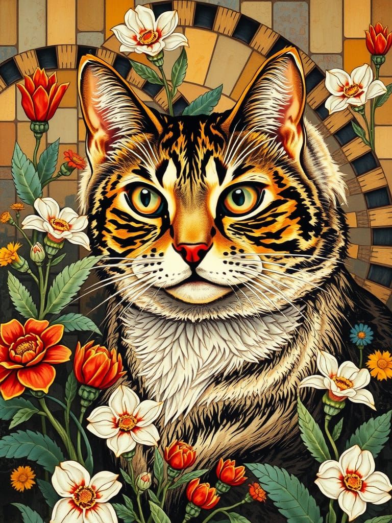 Easily create your own cat portrait images with our free AI image generator, perfect for fans of Gerald Brom and H.R. Giger