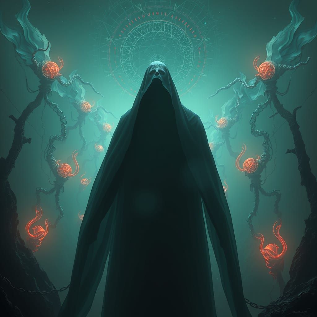 This image shows a serene and mysterious angel standing at the edge of two worlds, guiding spirits beyond the boundaries of reality. With a surreal dreamscape backdrop, the angel's presence is both peaceful and otherworldly, evoking the dark elegance of biomechanical art.