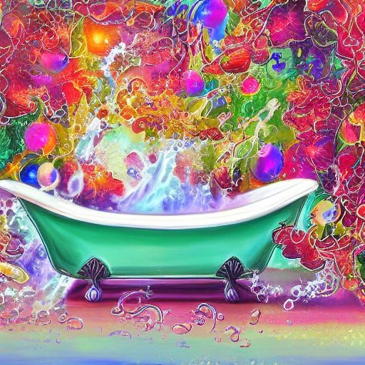 This anime illustration features petite feet in high heels, elegantly dangling over a bubbly, steamy bathtub. The vibrant colors and high detail create a sensual atmosphere.
