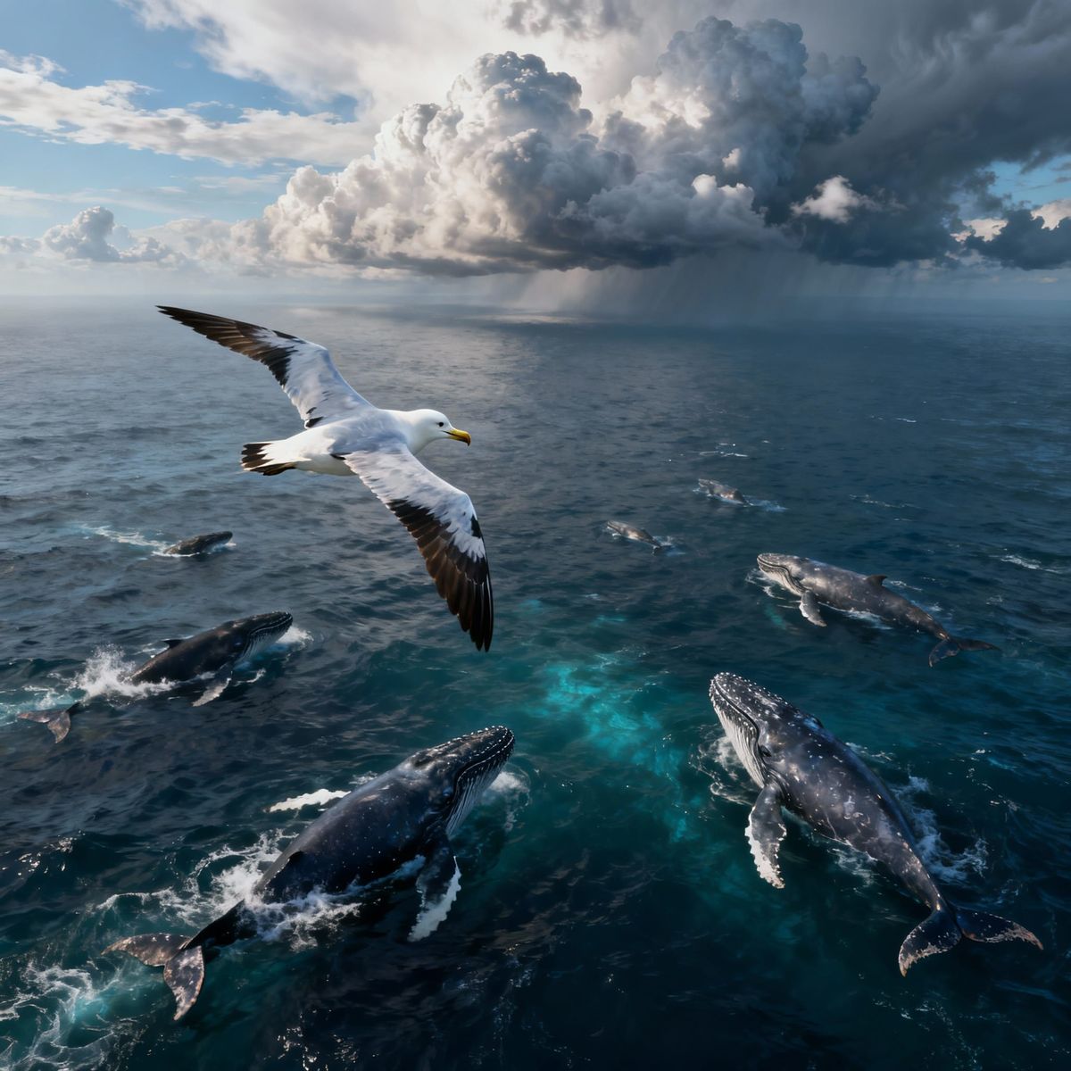 Easily generate stunning aerial views of marine life, like albatrosses and whales, with our free AI tool.