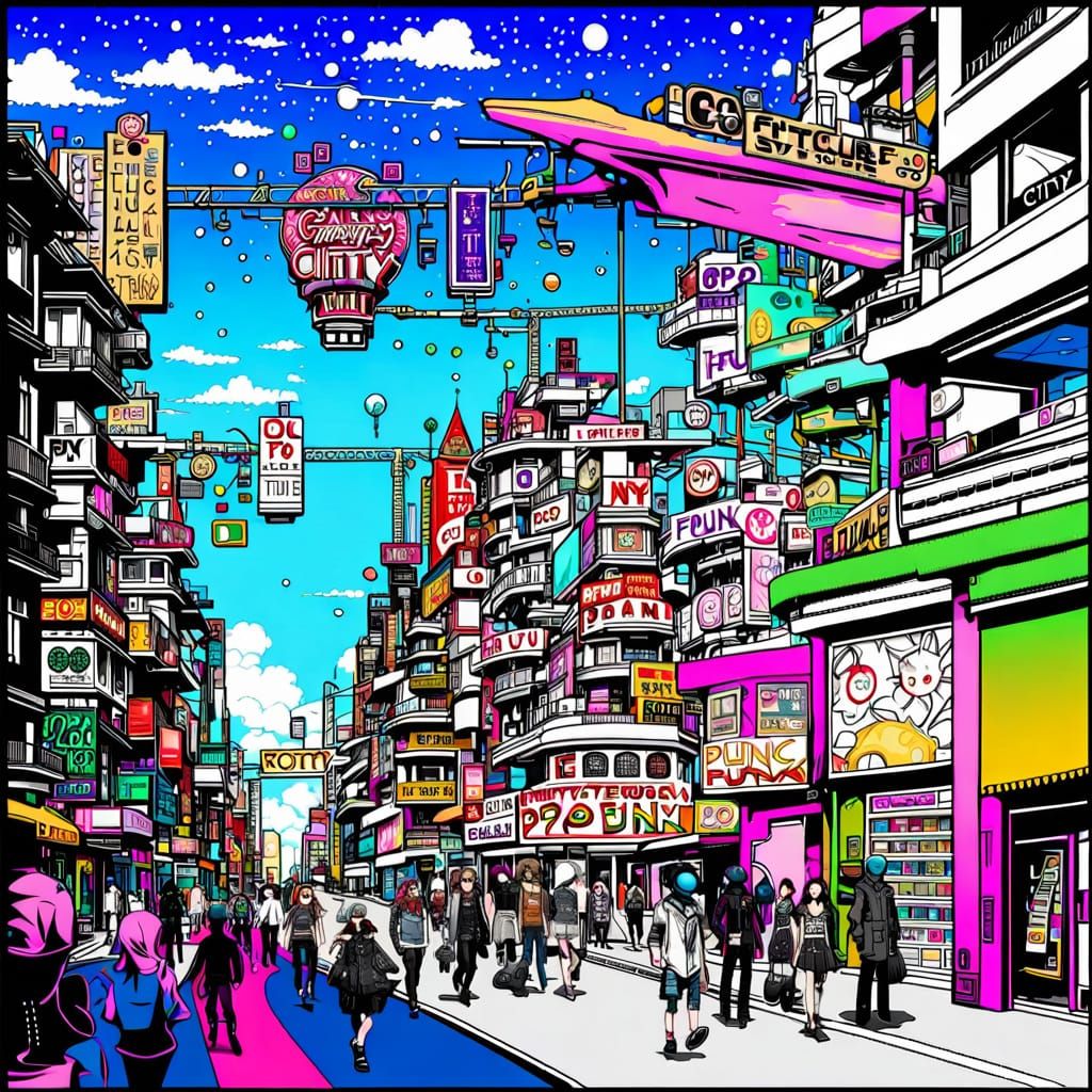 Design your own futuristic city images with our free AI image generator, featuring vibrant colors and mysterious landscapes.