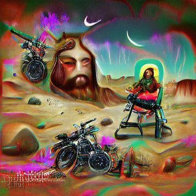 Create your own unique heavy metal or cyberpunk religious images with our free AI image generator.