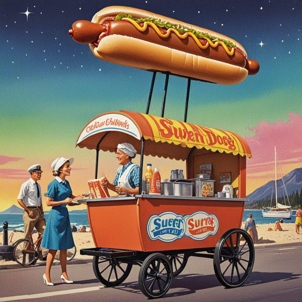 Easily generate your own retro 50s hot dog vendor images with our free AI tool. Get creative!